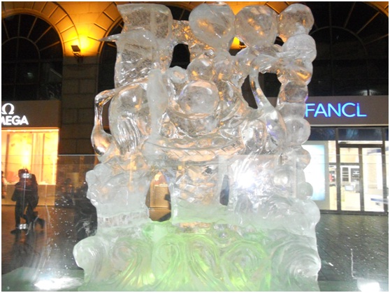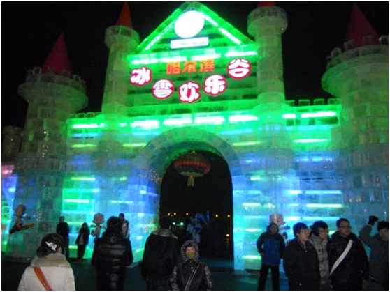 哈尔滨的冰灯每年吸引着成千上万的游人。如冰块堆砌的冰塔,巍峨高大;冰雕的“嫦娥奔月”栩栩如生;雪塑的小兔、小鹿精巧别致;充满乐趣的迷宫,令人眼花缭乱。晚上,冰雕中那五颜六色的霓虹灯一亮,冰光、灯光映在一起,五彩缤纷,耀眼夺目,真使人有一种置身仙境之感。不只是公园内,就连街道上、院门口,也处处可见冰雕雪堆的美景,使严寒的冬季也变得温暖热闹。