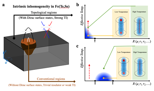 在上述系统工作的基础上,研究团队总结整理了现有实验和理论中发现的影响马约拉纳零能模的相关因素,提出了铁基超导体超导涡旋中马约拉纳零能模出现或消失的整体相图 (图五)。主要的影响因素有, 1)拓扑表面态存在与否决定涡旋类型。2)涡旋拓扑相变会交换拓扑与平庸相。3)体态准粒子会减弱马约拉纳零能模的实验信号,其中升温会增加热激发准粒子数目,趋近相变点会减小准粒子能隙。4)强磁场下多个马约拉纳零能模之间的杂化会导致零能模劈裂。