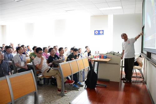 合影留念后,杨乐院士、汪景琇院士、杨国桢院士、欧阳钟灿院士分别作了《数学 教育 创新》、《谈谈太阳和空间物理》、《光学发展与人类社会进步》、《2014年诺贝尔化学奖漫谈:从显微镜到显纳镜》的报告。